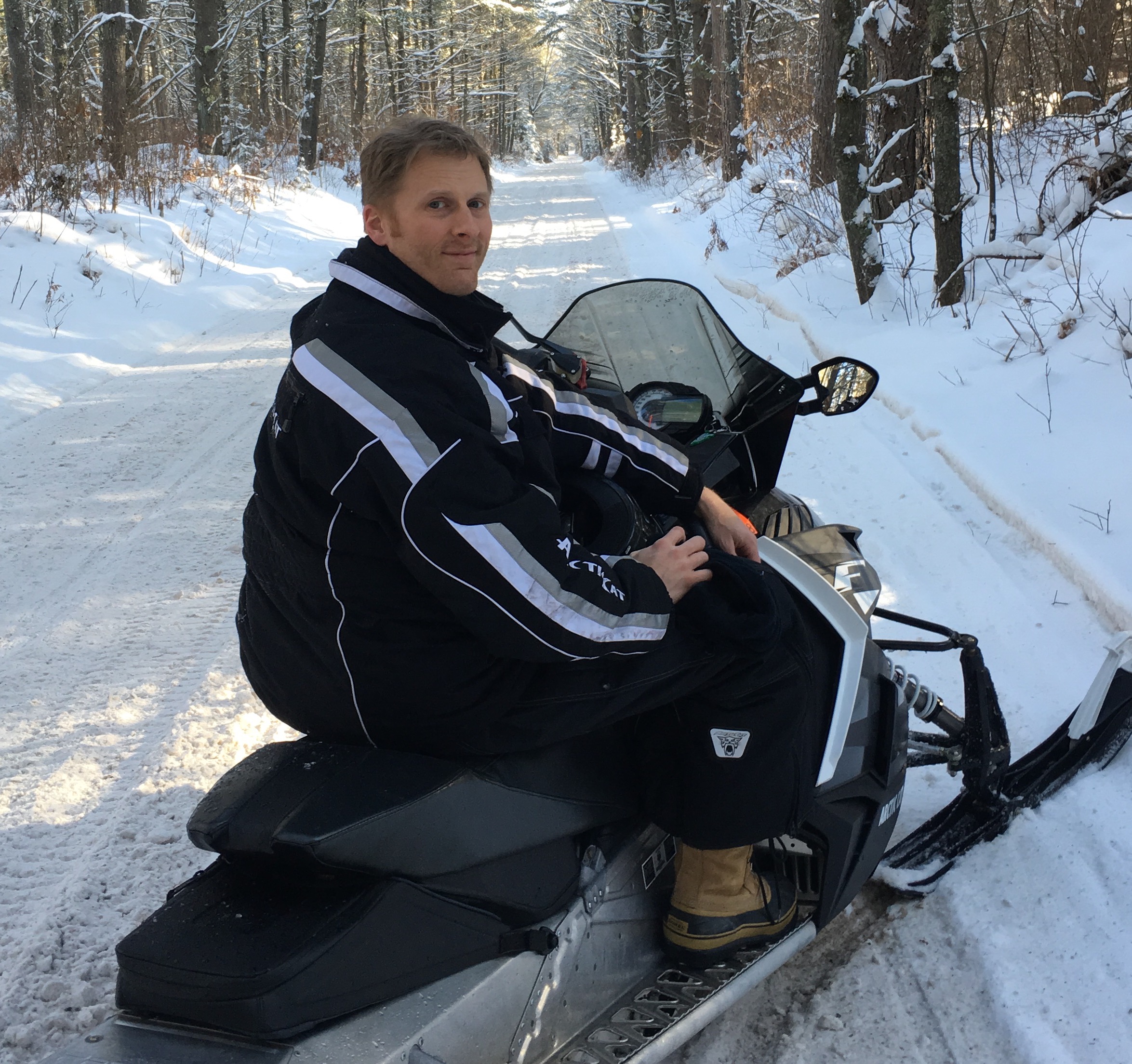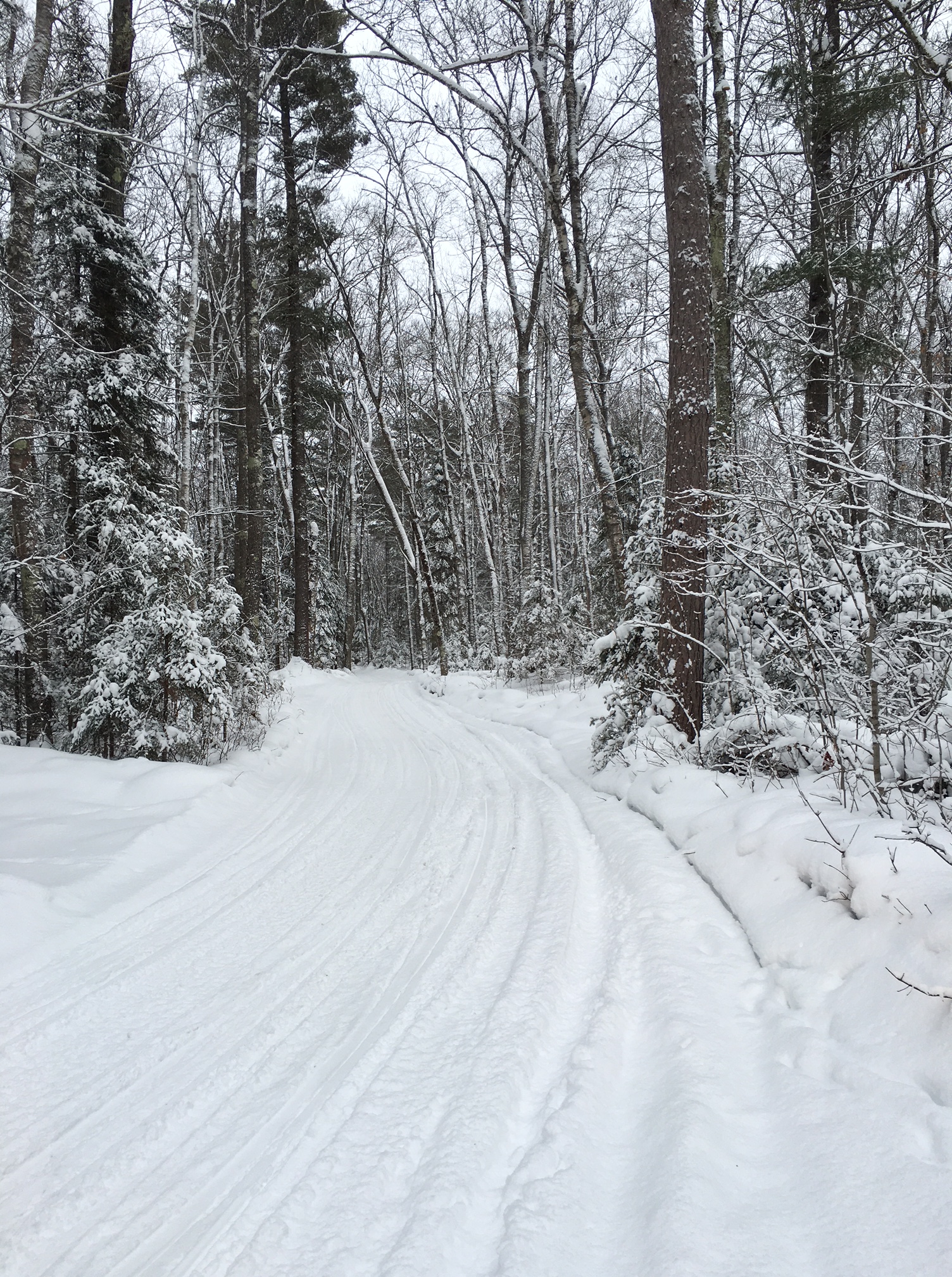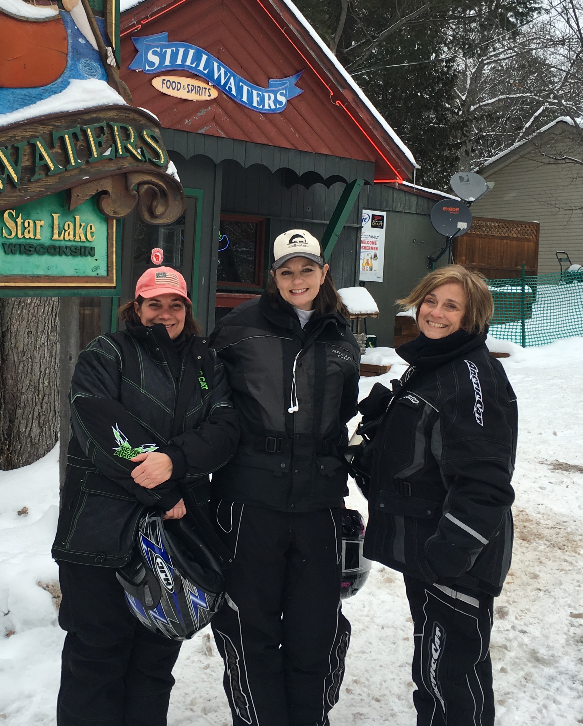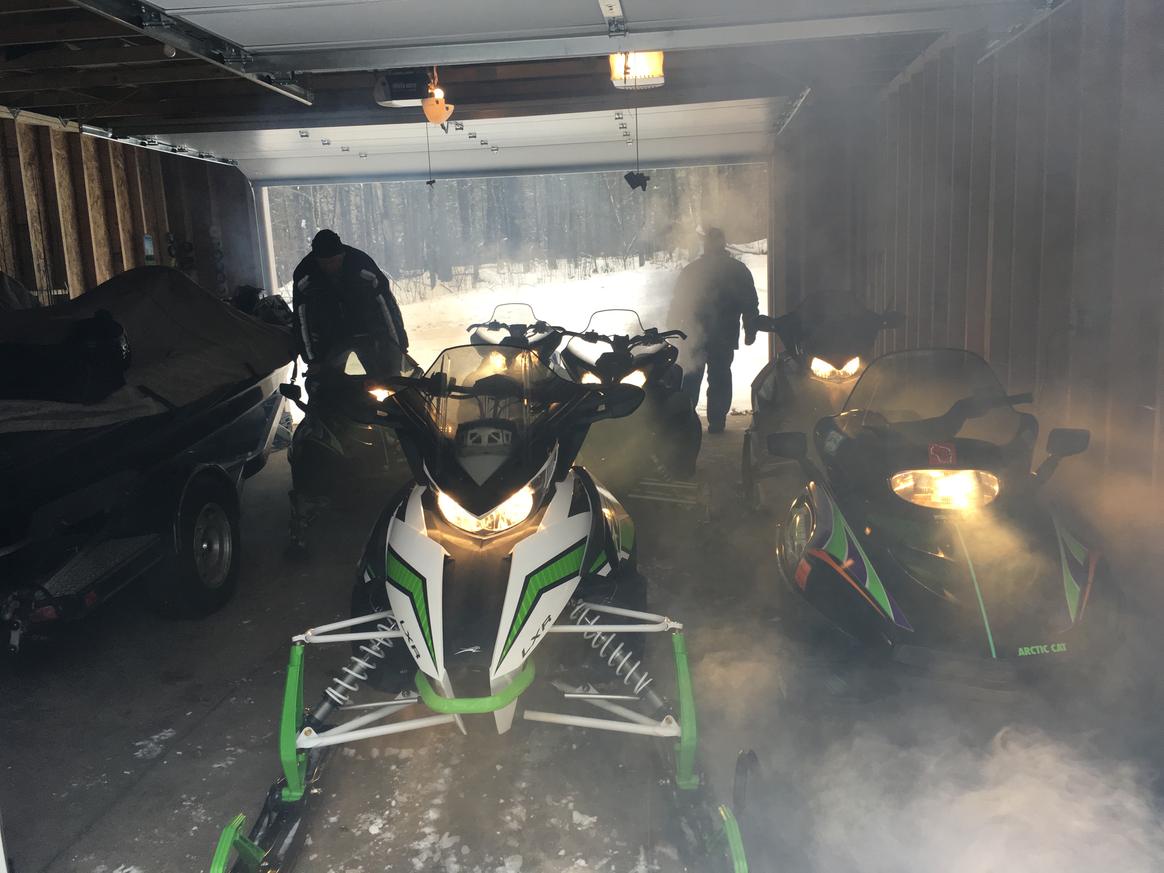 It was exciting to head out Friday morning – as you can see we had a bunch of sleds warming up in the garage. It was great having a caravan of six sleds moving through the winding, beautiful trails of the northwoods.