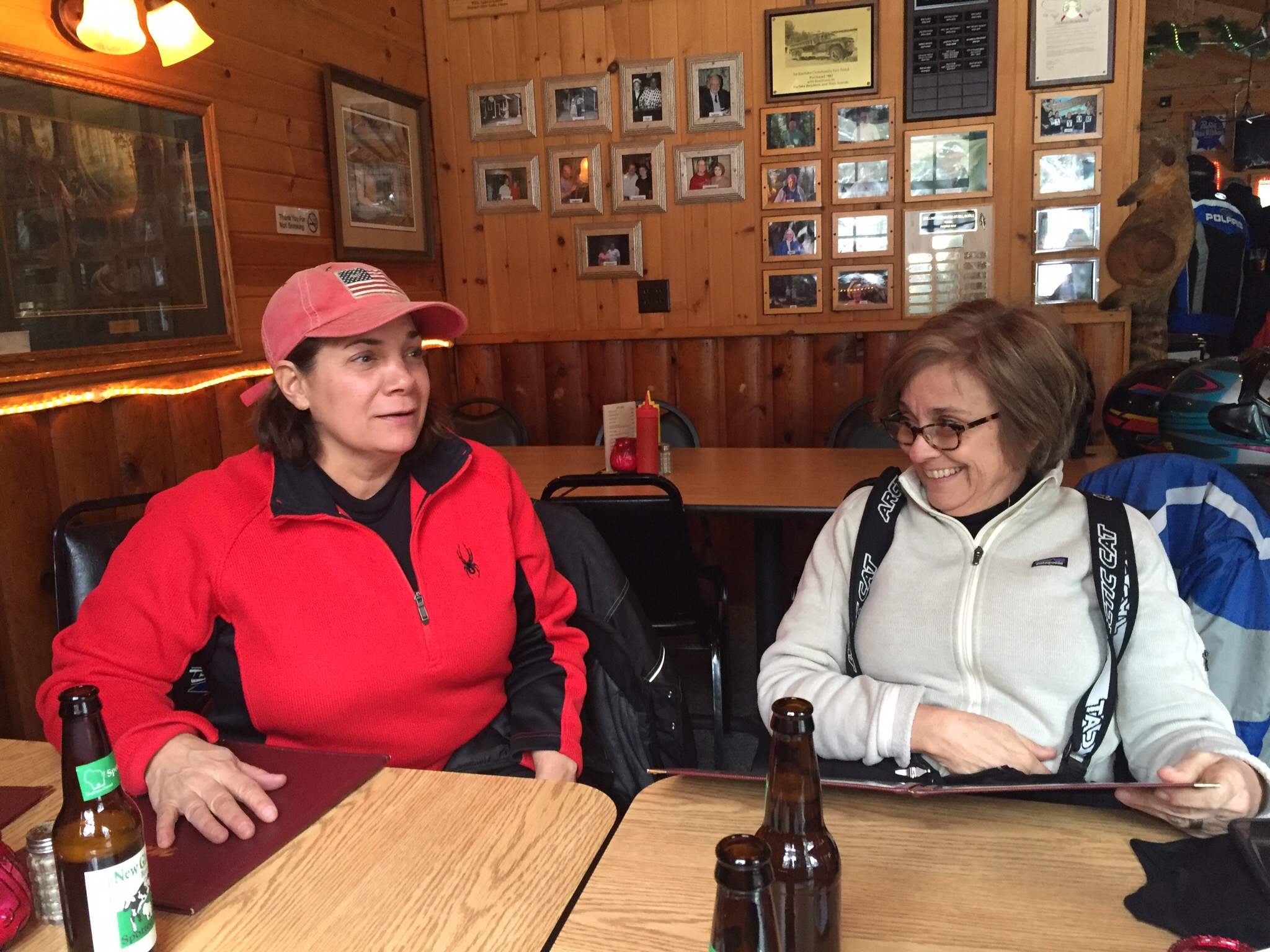We gave up early on Saturday though as the temperature hit 40 degrees and with all the traffic the trails quickly deteriorated. After getting back home we got in the car and drove to Blink Bonnie’s for a steak. We met Steve Osterling and his friend Greg Kramer there and a nice dinner. Of course, Steve and I had to have a picture of both of us wearing our Kromers!