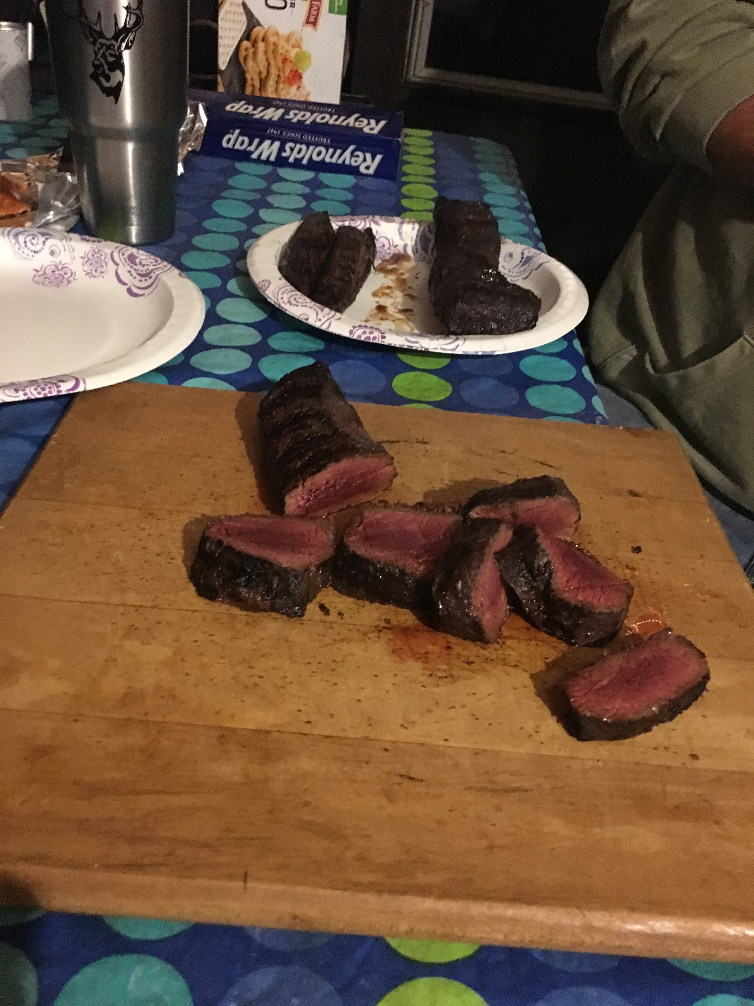 We always eat well – Scott makes sure of that! Here’s a picture of the best venison filet I’ve ever eaten – it was seasoned and cooked to perfection…..