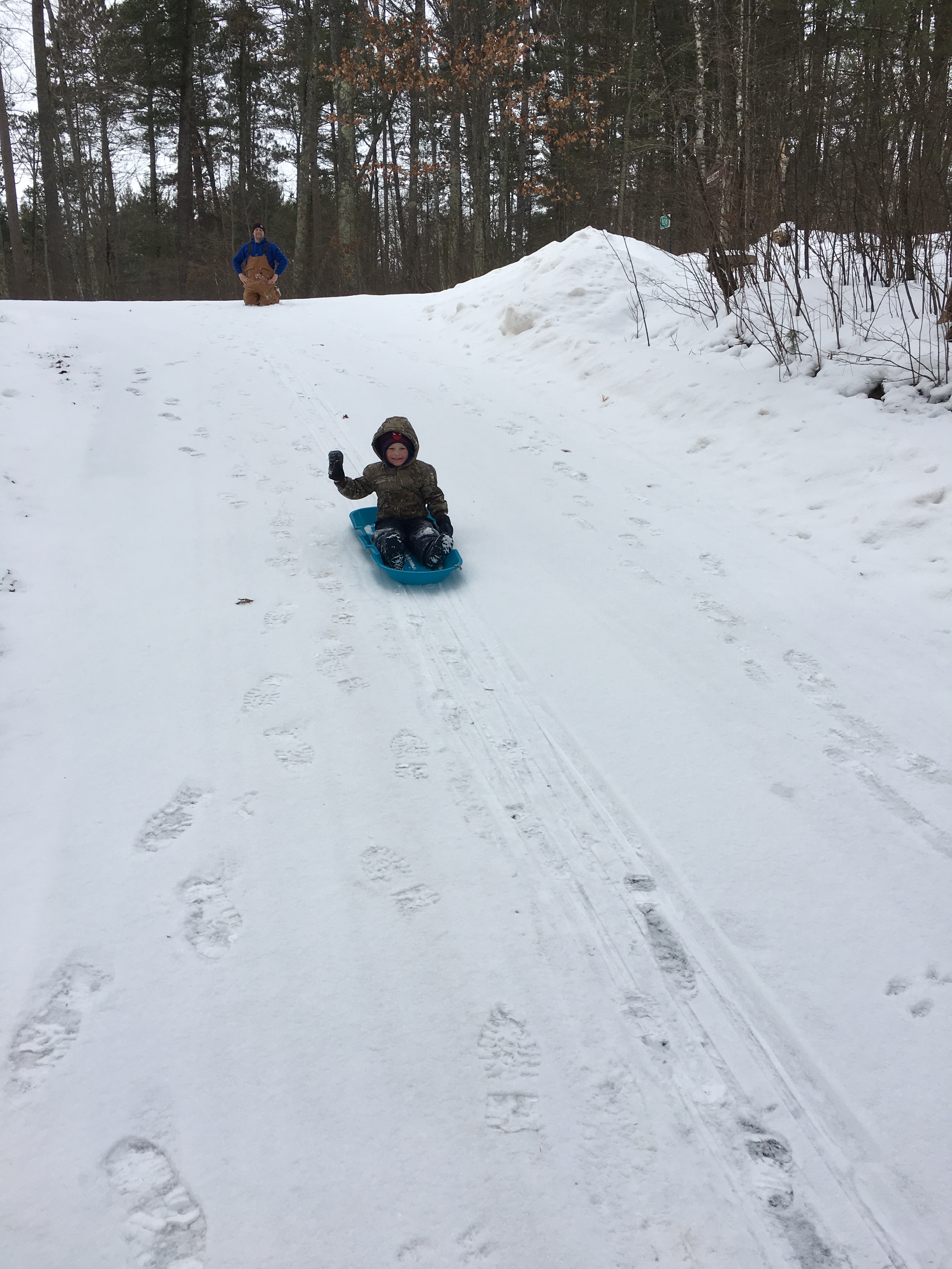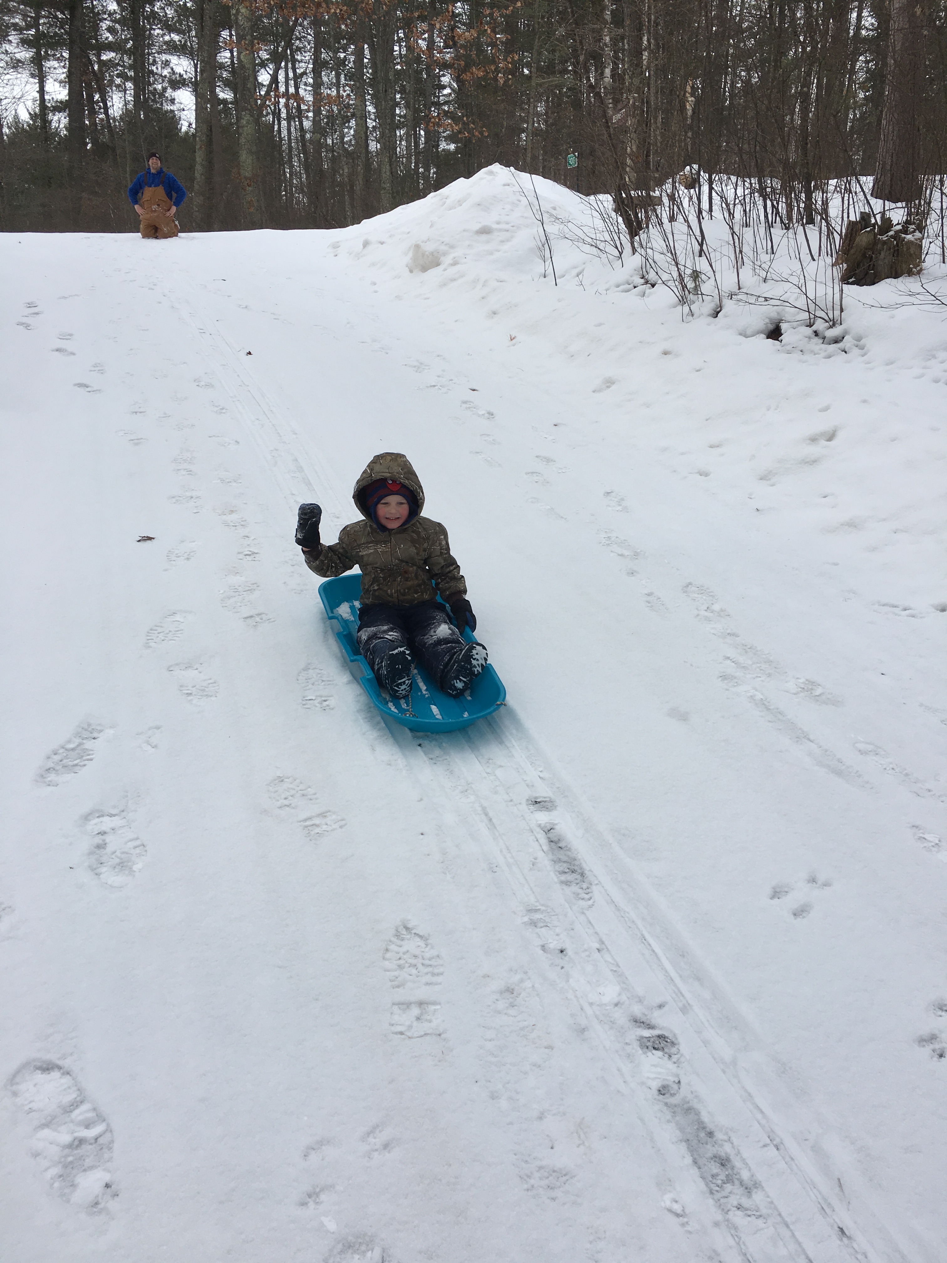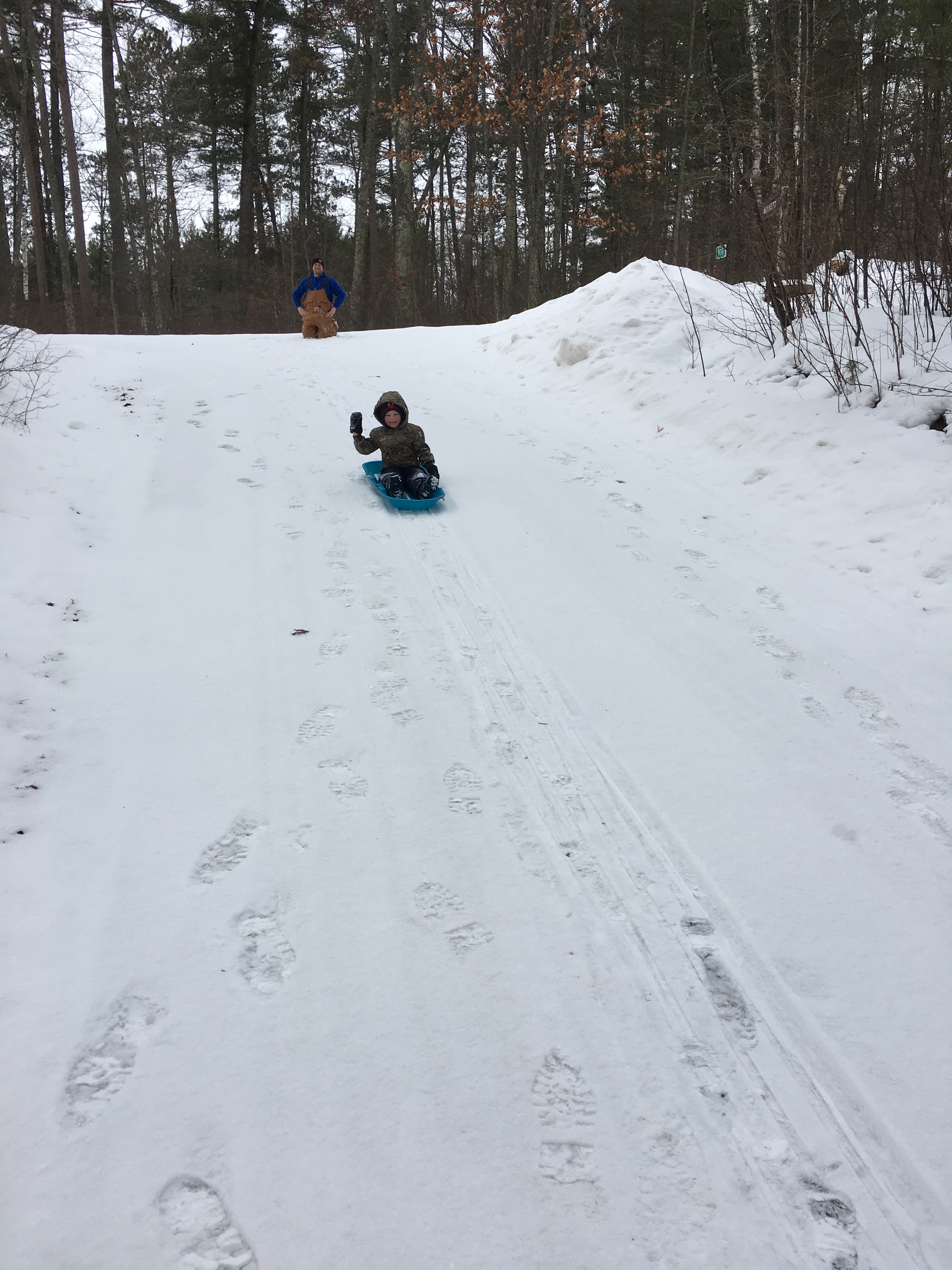 Was a fun day. While we packed up Travis’ truck, Logan couldn’t resist some sledding down the driveway. Here’s a picture sequence of Logan zipping down the driveway!